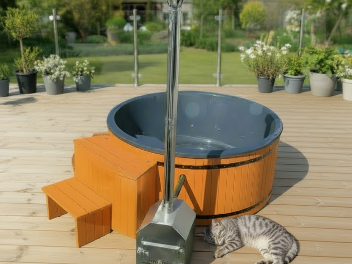 - EXTERNER HOLZKAMIN + 2M SCHORNSTEIN MIT ABDECKUNG